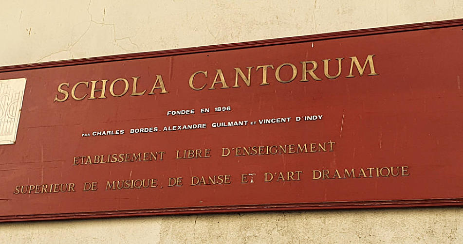 The story of the Schola Cantorum is first and foremost the story of a will, that of one man: Charles Bordes. In 1890 he laid the foundations for his school . In 1894, he gathered some benefactor and shareholder friends and created his "Schola Cantorum". Among his first collaborators were two great musicians whose fame would support his project: Alexandre Guilmant and Vincent d'Indy (1851-1931). The school officially opened its doors on October 15, 1896 in the Montparnasse district, before settling permanently in 1900 in the Latin Quarter, at 269 rue Saint Jacques, in the former convent of the English Benedictines, built in 1674-1677. The Schola Cantorum provides students from all over the world with a teaching that is aimed at a very wide audience, the ages mixed, the ambitions diverse and adapted to all levels from beginner to concertist.