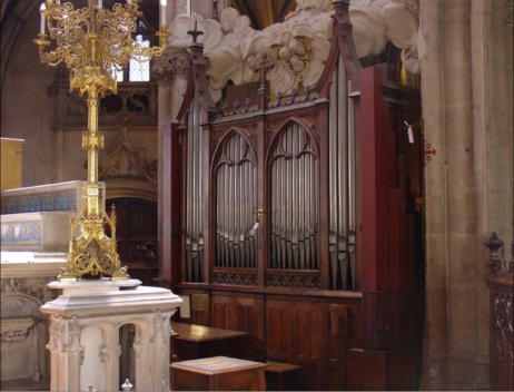 C1The choir organ was built in 1862 by Cavaillé-Coll. Its state of preservation in relation to the original design of Aristide Cavaillé-Coll is excellent. In 1902 Mutin did some works on the keyboards and the console. In 1950, works were done by an unknown organ builder. In 2018/19 Yves Fossaert replaced the engine and did dusting and a general tuning.